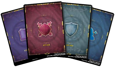 Po opłaceniu odpowiedniego kosztu widocznego w lewym górnym rogu karty możemy skorzystać z specjalnej zdolności danego artefaktu, może to wzmacniać nasze jednostki, osłabiać przeciwnika, wpływać na atak, obronę lub pozwalać na manipulację kartami z talii lub stosu kart użytych. Artefakty w użyciu pozostają umieszczone poza planszą.